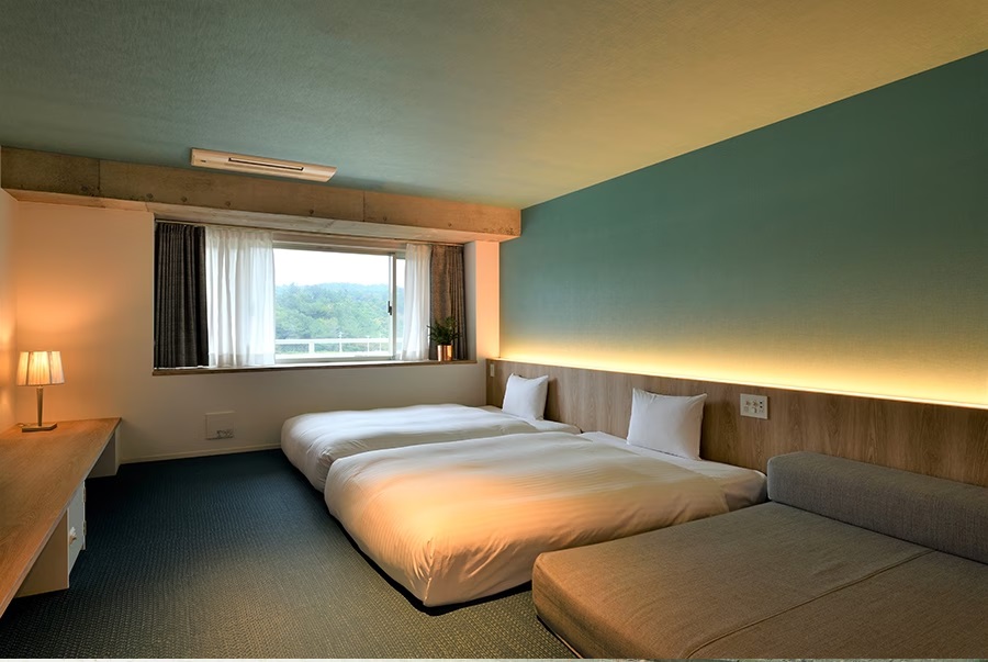 「星野リゾートBEB5沖縄瀬良垣」のお部屋は、広々としたコンドミニアムスタイル。ダイソンのドライヤー、バルミューダのレンジのほか、調理器具や洗濯乾燥機もしっかり揃っていて、長期滞在のワーケーションに理想的な場所。