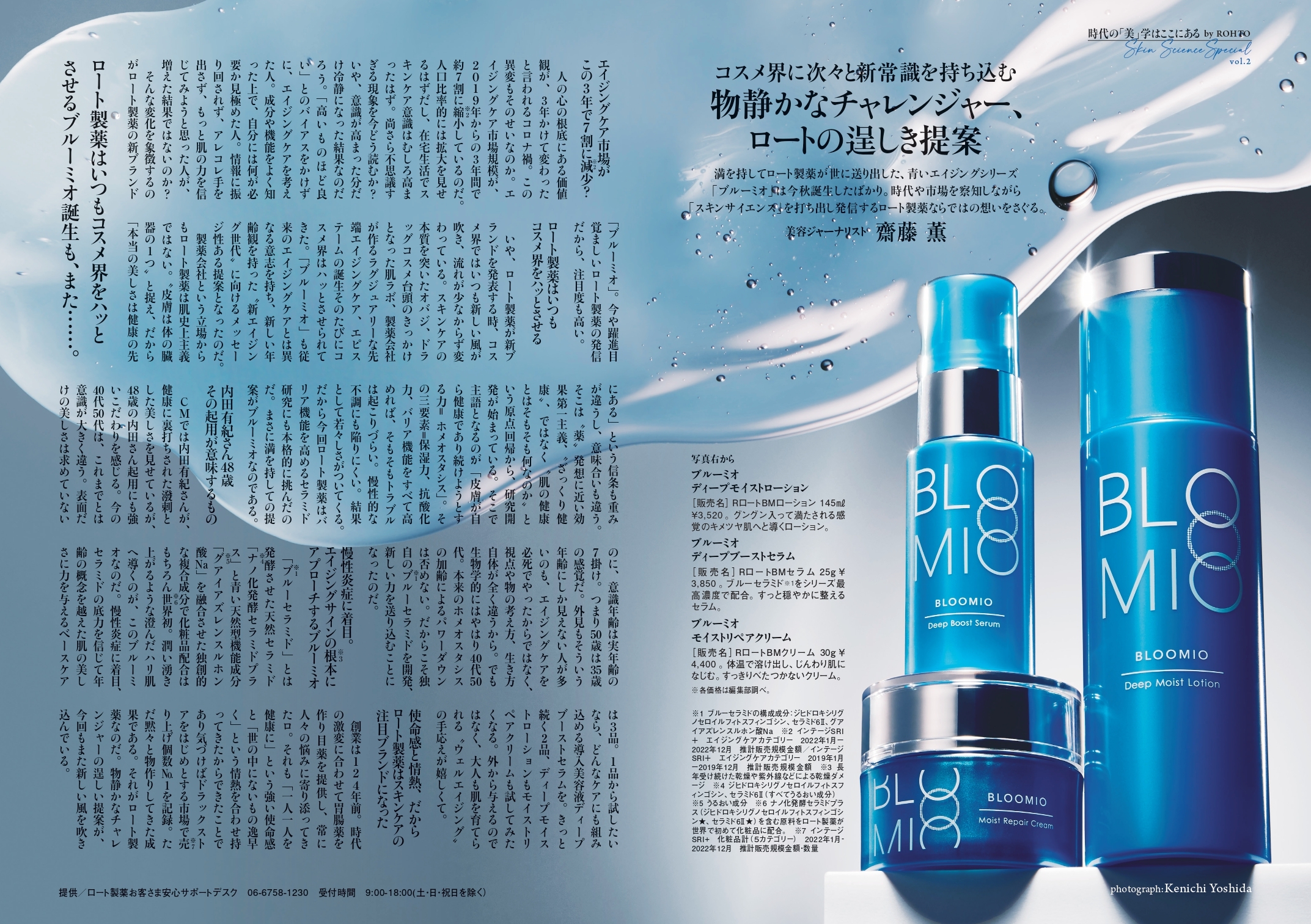 週刊文春WOMAN読者の中心は40~50代の女性で、美容に関する関心も高い層が多いです。医薬品やスキンケア商品の開発を行うロート製薬様は、読者と相性が良く、創刊時から長年にわたりタイアップ連載をご実施いただいています。今回は、第4回目の連載「時代の『美』学はここにある by ROHTO Skin Science Special」をご紹介いたします。二回に渡るシリーズ連載で、ロート製薬様の各スキンケアシリーズと、新ブランド「ブルーミオ」をご紹介。様々な媒体で活躍する美容ジャーナリストの齋藤薫さんに執筆いただき、ロート製薬様のコスメ界における飛躍や、多くの人に支持される理由に迫りました。