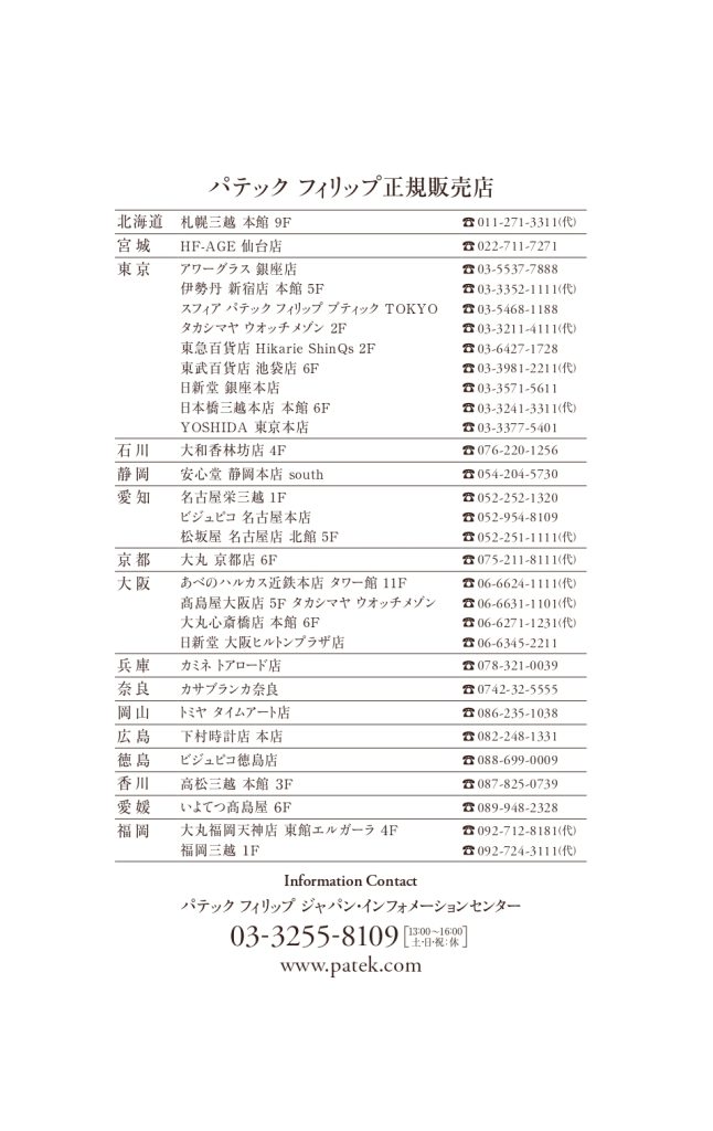 表2片観音ではパテック フィリップ正規販売店のお問い合わせ先を記載しており、実際に誌面をご覧になった方の多くが店舗へ問い合わせています。