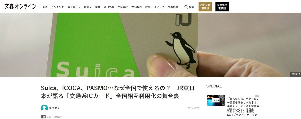 今回ご紹介させていただくのは、JR東日本様と文春オンラインとの「交通系ICカード全国統一