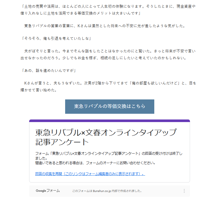 不動産総合流通会社として、売買仲介、賃貸仲介や開発した分譲マンションの販売を手掛ける東急リバブル株式会社様との、「文春オンライン」でのタイアップ事例のご紹介です。