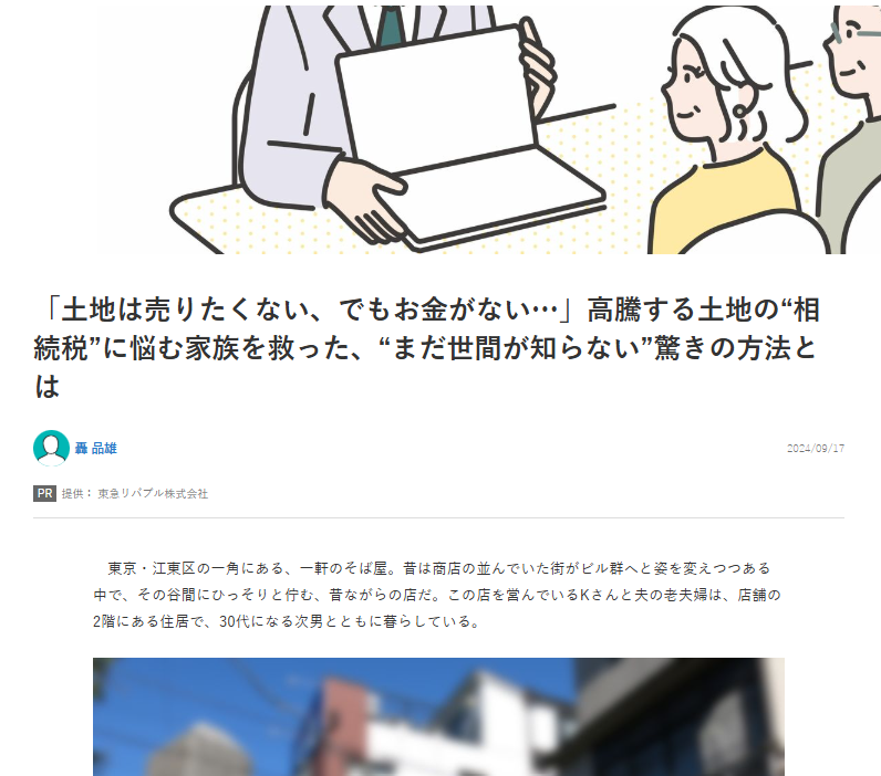【相続特集掲載】実家の相続・等価交換がテーマの“物語風”タイアップで、10万PVを突破